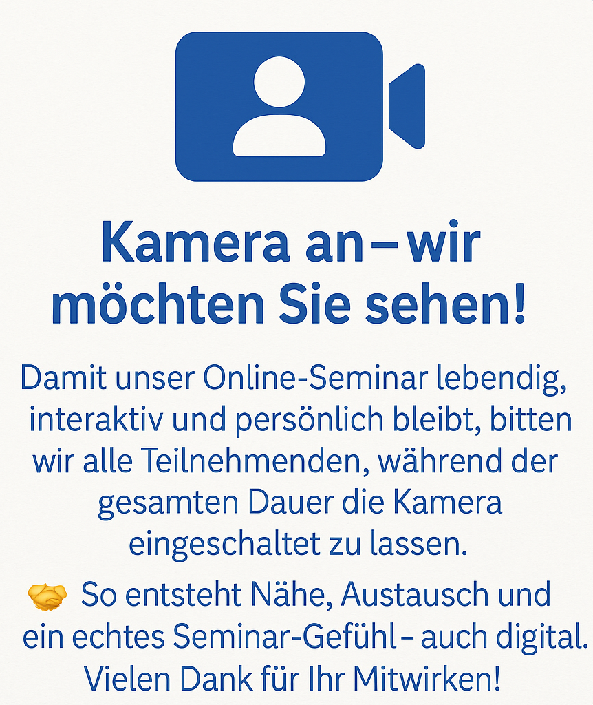 Sollten Sie aus verschiedenen Gründen nicht am Online Live-Seminar teilnehmen können, rufen Sie uns bitte an: Wir werden zusammen eine Lösung finden.